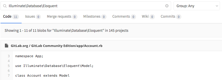 Your company may consist of many different developer teams each of which has their own group where the various projects are hosted. Some of your applications may be connected to each other, so your developers need to instantly search throughout the GitLab instance and find the code they search for.