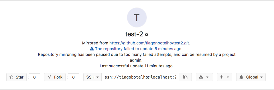 Once the mirror repository is updated, all new branches, tags, and commits will be visible in the project's activity feed. Users with at least developer access to the project can also force an immediate update with the click of a button. This button will not be available if the mirror is already being updated or 5 minutes still haven't passed since its last update.